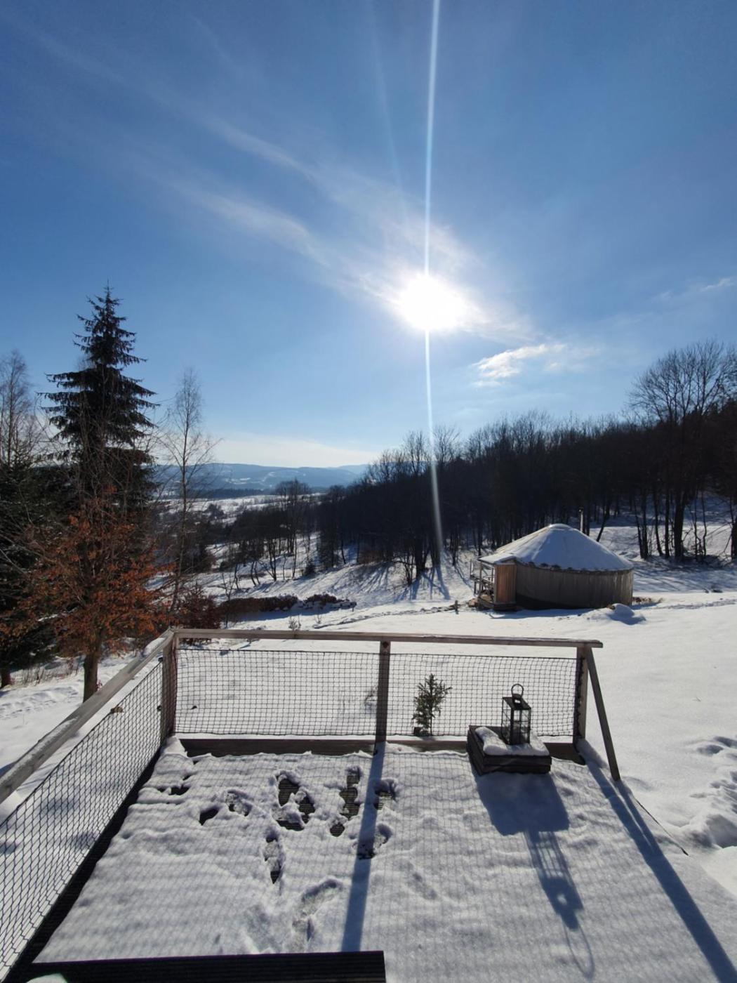 Jurta Zielona. Guests will find a stovetop, a refrigerator and kitchenware in the kitchenette. The tent also has a barbecue. The tent offers a tea and coffee maker, a seating area, a terrace with mountain views as well as a private bathroom featuring a shower. The unit offers 2 beds. Namiot - 6 osobowy. Powierzchnia pokoju ok.: 35 mkw.