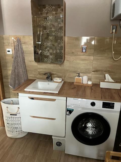 Dom wakacyjny. This holiday home features a fireplace. Boasting a private entrance, this holiday home features 1 living room, 2 separate bedrooms and 2 bathrooms with a walk-in shower and a bath. Guests will find a stovetop, a refrigerator, a dishwasher and kitchenware in the well-fitted kitchen. The holiday home also comes with a barbecue. Featuring a terrace with garden views, this holiday home also features a washing machine and a flat-screen TV. The unit has 4 beds. Dom wakacyjny - 6 osobowy. Powierzchnia pokoju ok.: 55 mkw.