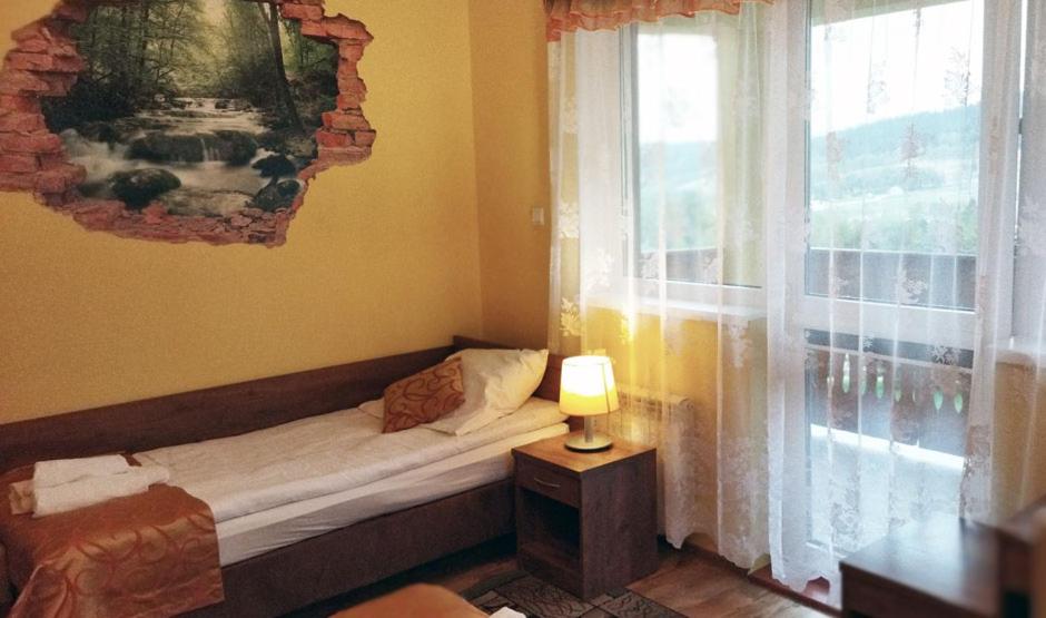 Pokój Dwuosobowy z widokiem na góry. Jest to pokój dwuosobowy z prywatną łazienką, szafą, czajnikiem elektrycznym oraz balkonem. W tej opcji zakwaterowania do dyspozycji gości są 2 łóżka. Pokój Dwuosobowy - 2 osobowy. Powierzchnia pokoju ok.: 16 mkw. ;